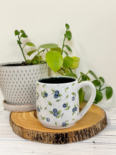 sold out#006 - 16 oz. White speckled mug with blueberry pattern