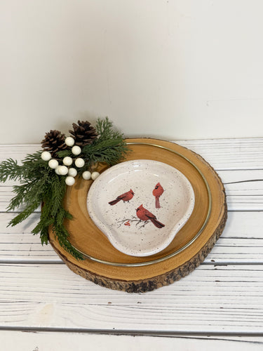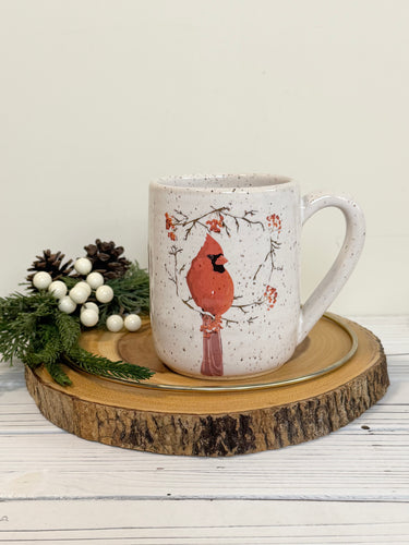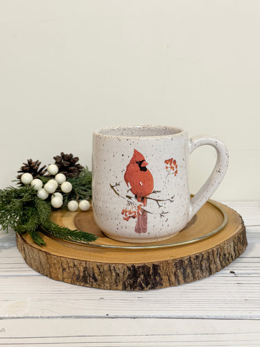sold out#010 - 16 oz. White speckled mug with Snowy Cardinal