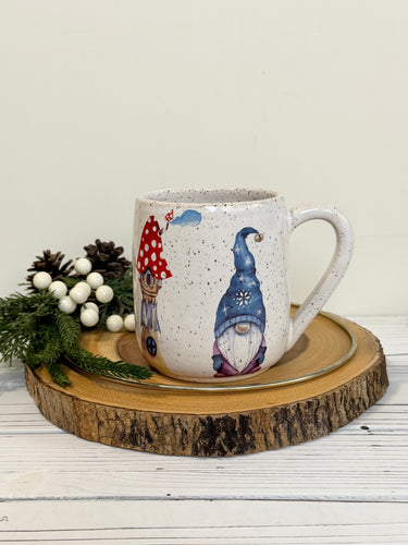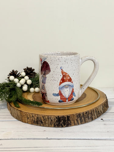 sold out#013 - 16 oz. White speckled mug with Christmas gnomes