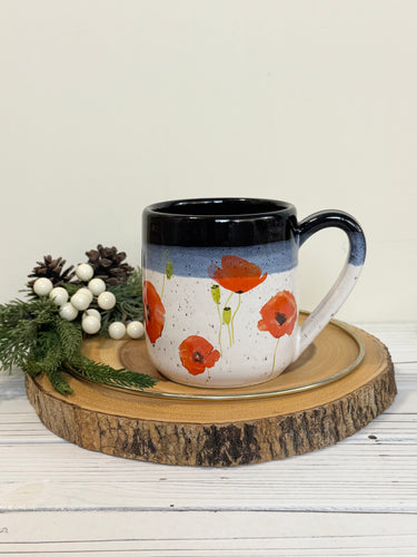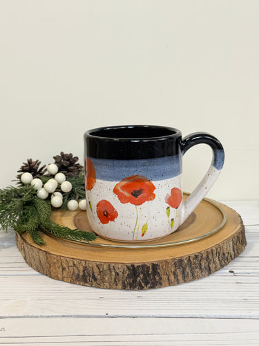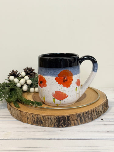 sold out#015 - 16 oz. Poppies on a white speckled mug with black inside and rim