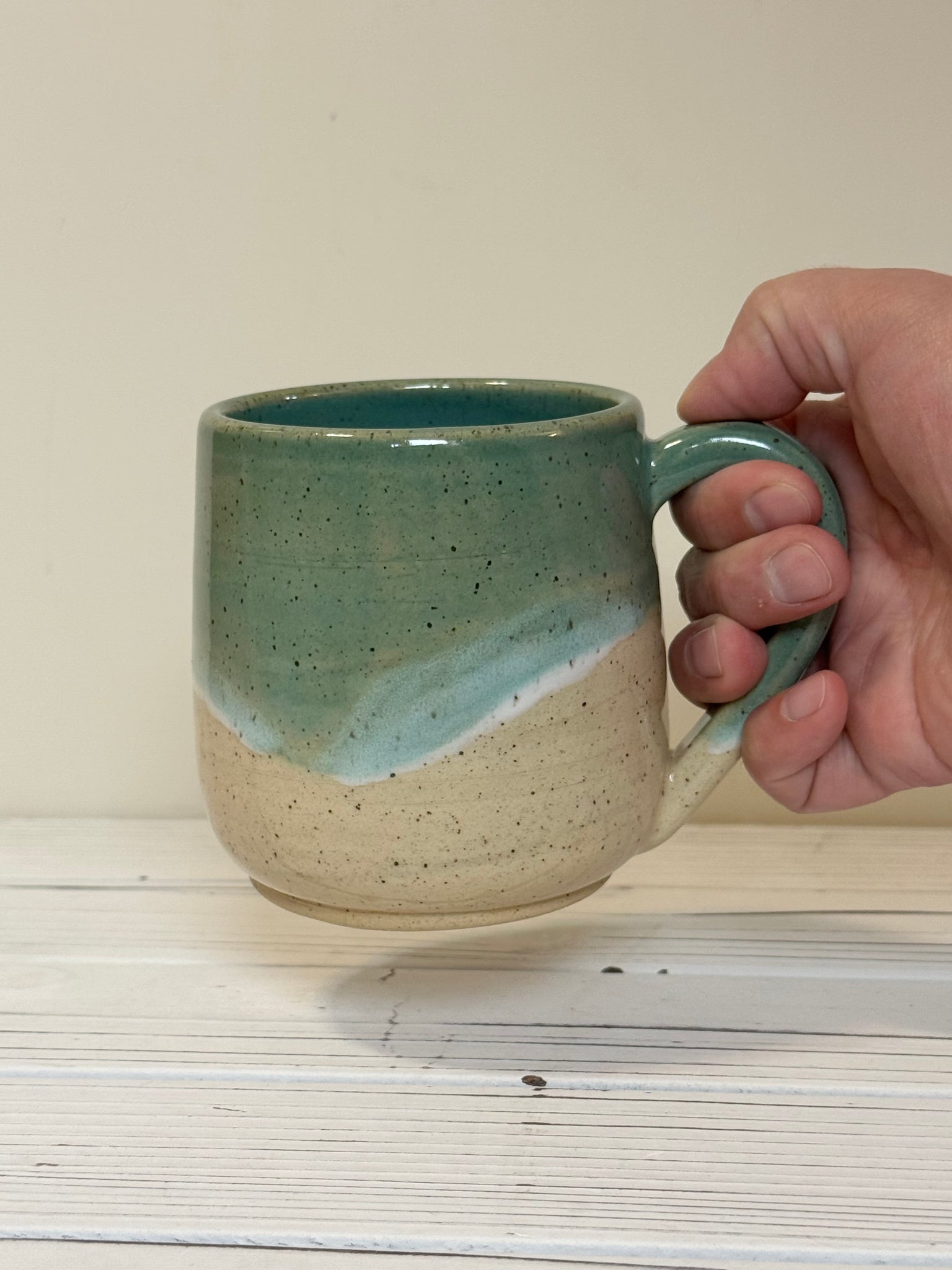 Handmade Wheel thrown pottery mug. Holds approximately 16 oz.