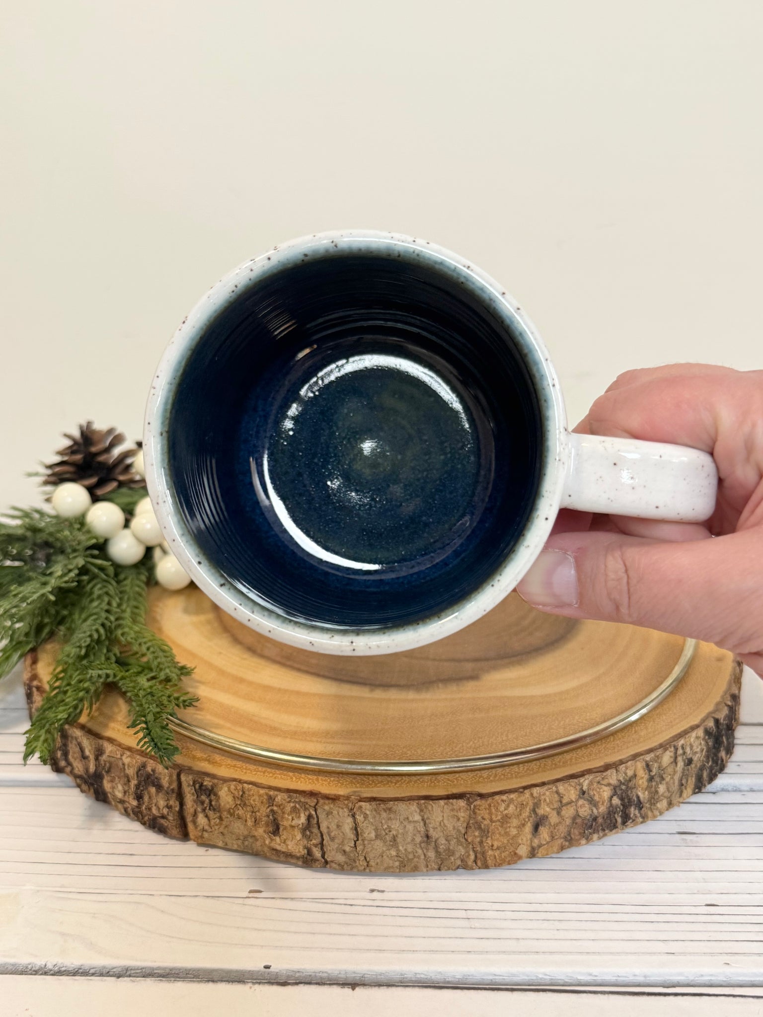 Handmade, Wheel thrown pottery mug. Holds approximately 14 oz.