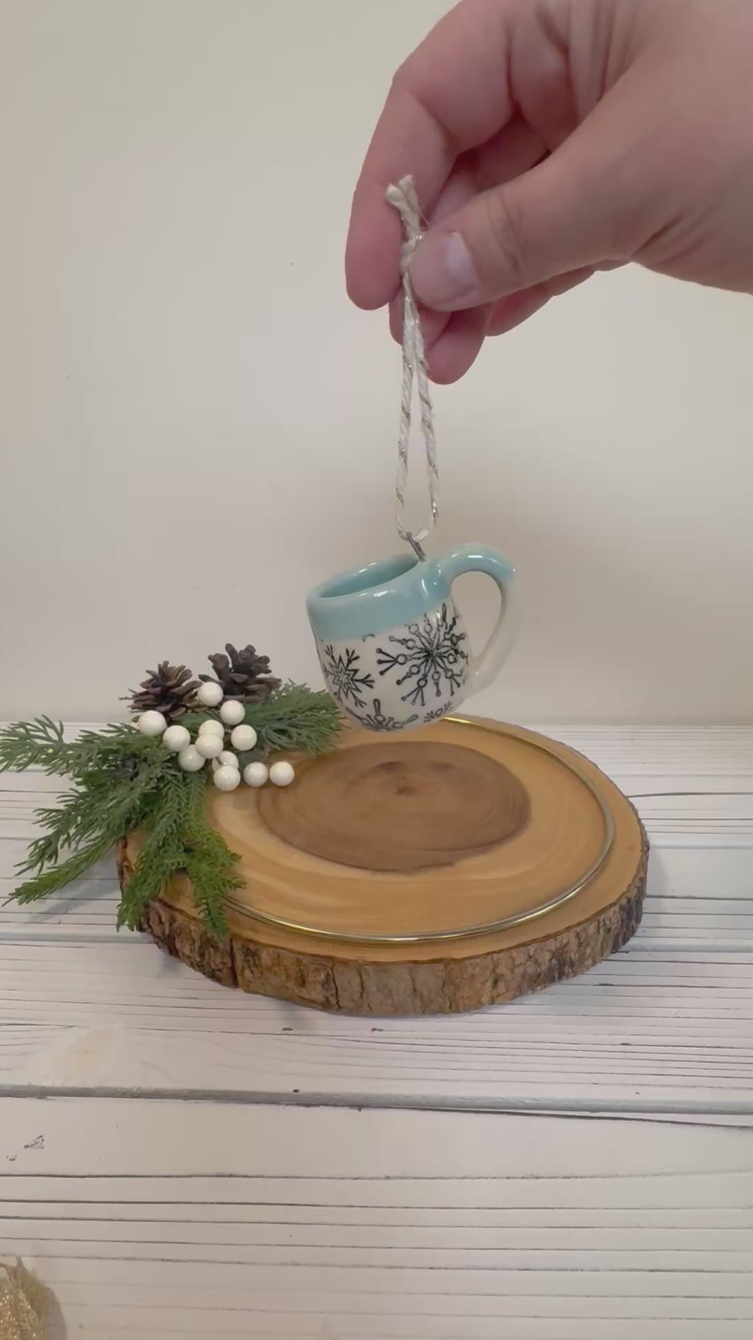 Sweet, miniature wheel thrown, pottery mug ornament. Made just like the real thing but smaller and cuter! Great for a gift, or show your love for pottery on your own Christmas tree.
