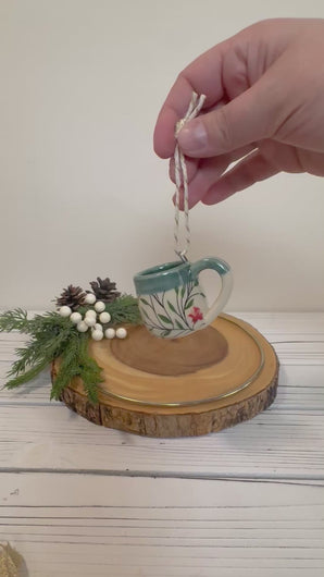 Sweet, miniature wheel thrown, pottery mug ornament. Made just like the real thing but smaller and cuter! Great for a gift, or show your love for pottery on your own Christmas tree.